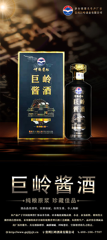 貴州巨嶺酒業(yè)有限公司,座落于聞名世界的古鎮,國酒之鄉“茅臺鎮”。與“國酒茅臺”共享得天獨厚的氣候、土壤、水源、以及微生物群等自然資源;《巨嶺酒業(yè)》老作坊前身“巨嶺燒坊”,經過多年的傳承,秉承先輩們代代相傳的古法釀造工藝,歷經幾代人的延續(xù)和釀酒發(fā)展,奠定了《巨嶺酒業(yè)》發(fā)展的堅實基礎。
